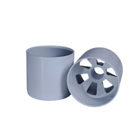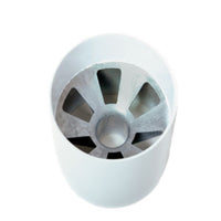 Hole cup made of aluminium that is powder coated white.