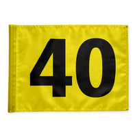 Driving range distance marker flag 40 m, yellow with black digits, double 115 gram fabric