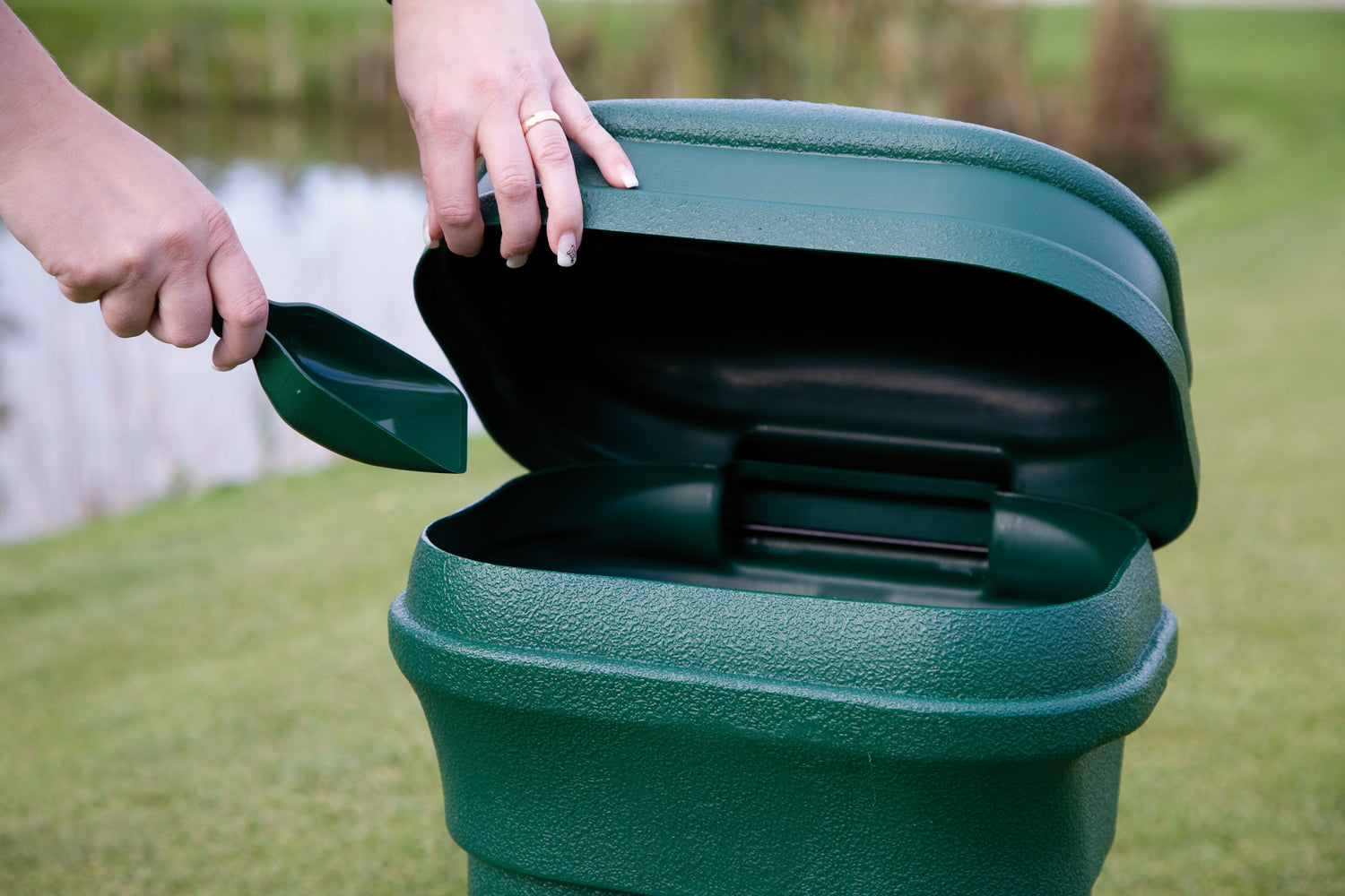 Divot / Seed & Soil Container. Green. Free-standing. With lid and shoved. Contains 15 liters (3.9 gals)